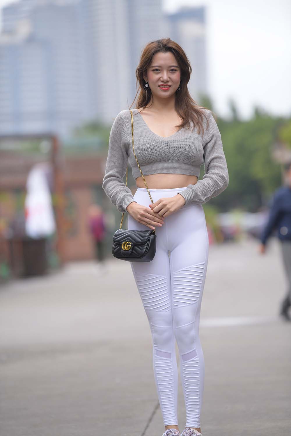 精选街拍作品 NO.0538 红石街拍摄影作品 白色紧身裤大长腿美女