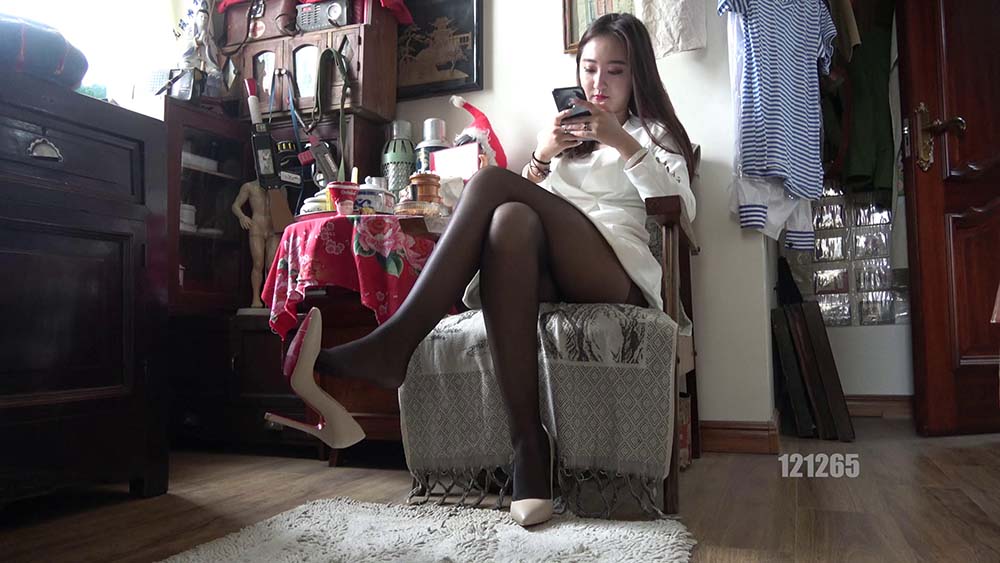 [K&M丝足视频]NO.0062 黑丝白色连衣裙美女挑鞋