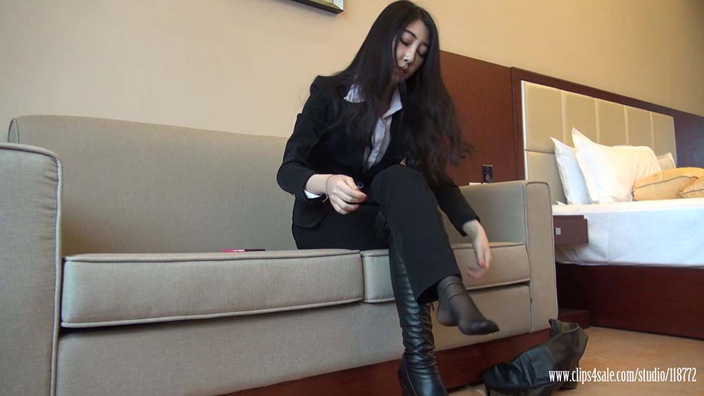 [K&M丝足视频]NO.0099 美女刘冰黑丝袜靴袜脚