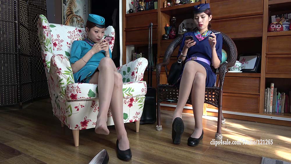[K&M丝足视频]NO.0171 王佳,芮芮双人空乘制服挑鞋