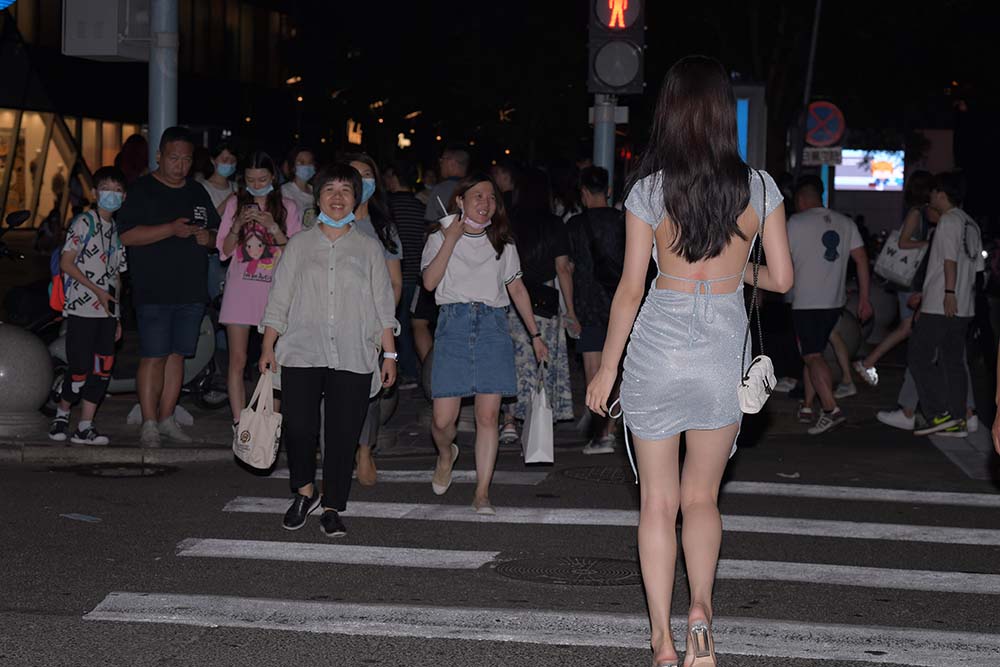 精选街拍作品 NO.1334 一只麋鹿摄影作品 – 蓝色露背包臀裙美女