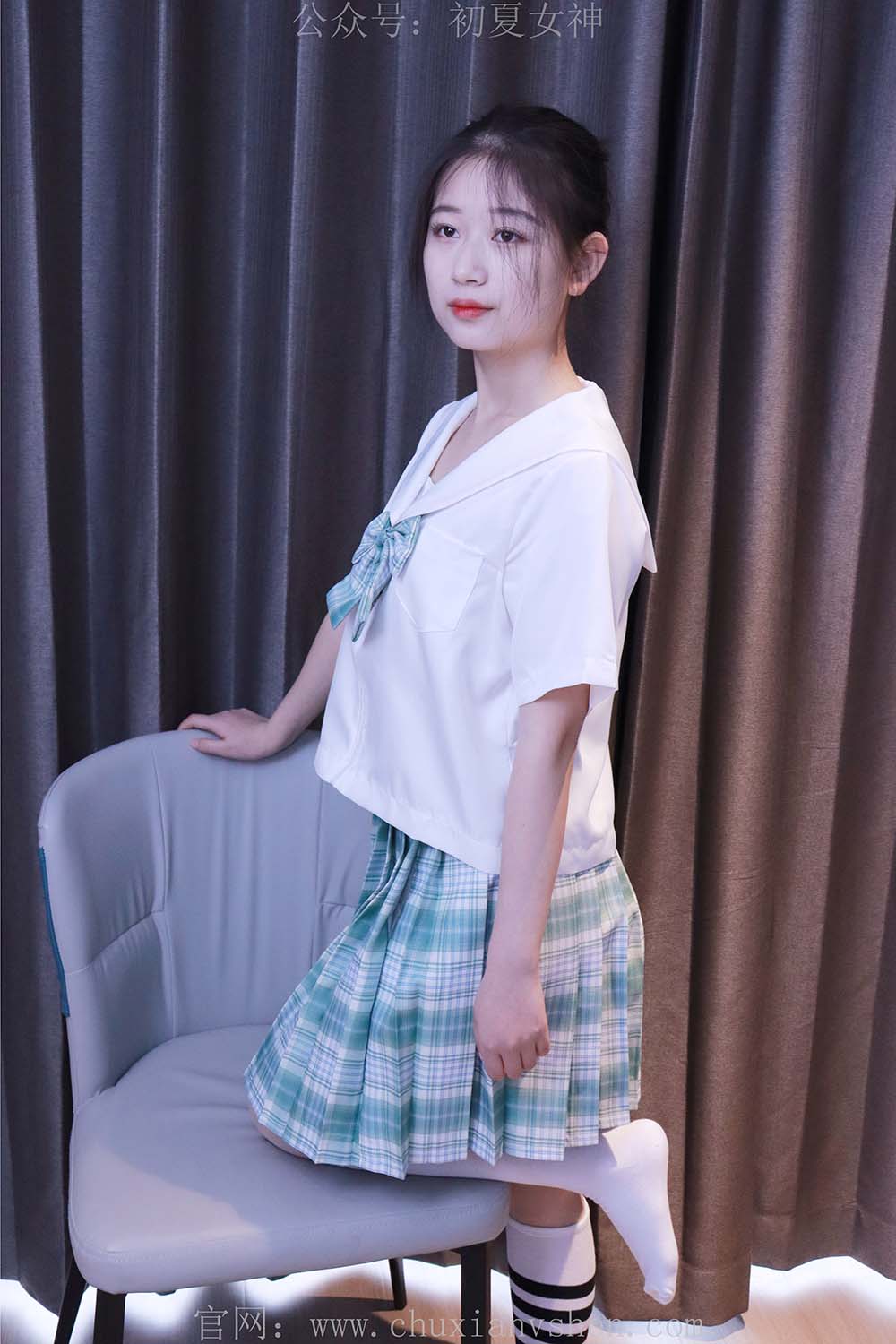 初夏女神 NO.013 念念 常规S码绿色JK套搭配小白鞋