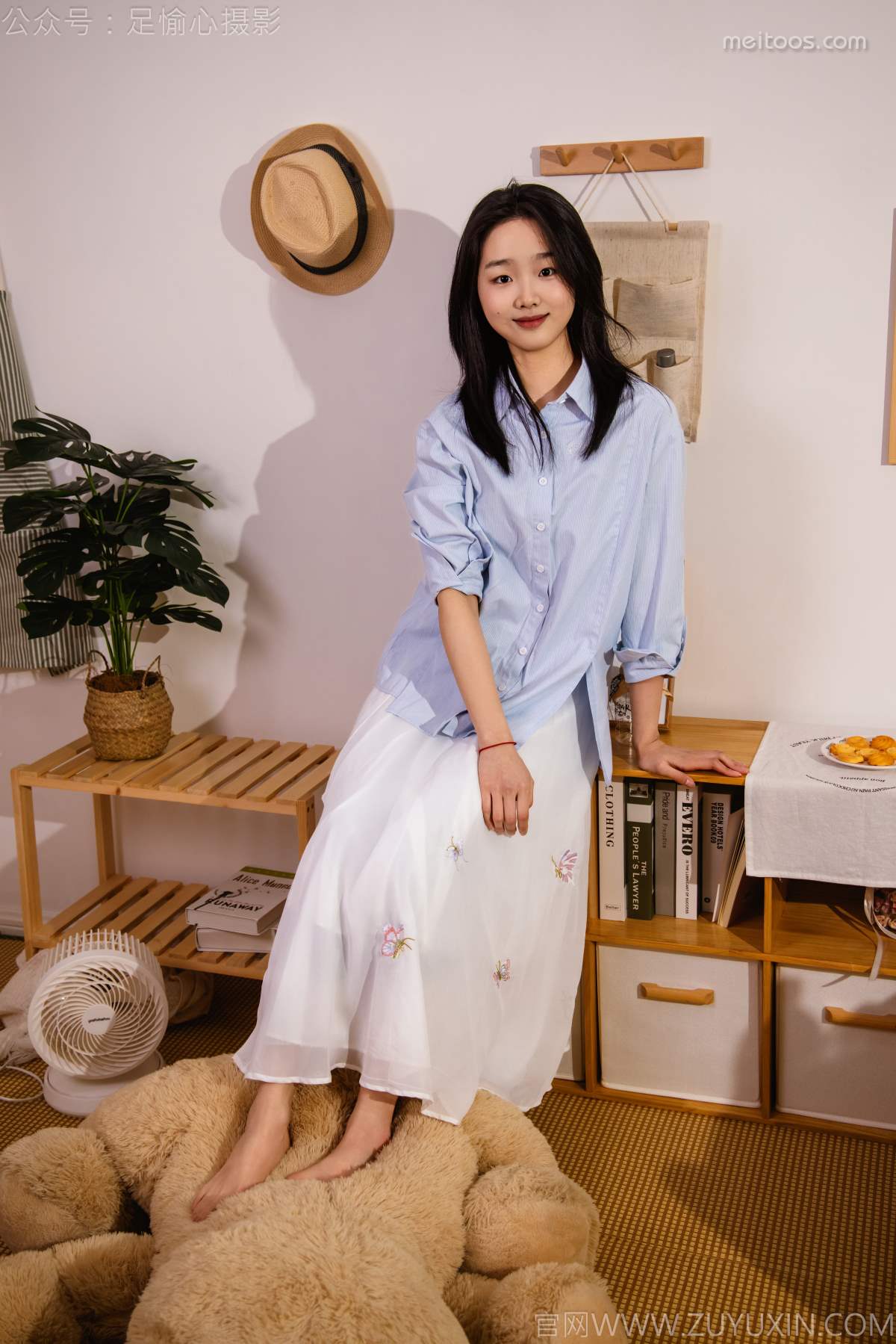 足愉心 NO.023 奶芙(搭配:蓝色衬衫、白色长裙、帆布鞋、白色棉袜、裸足)