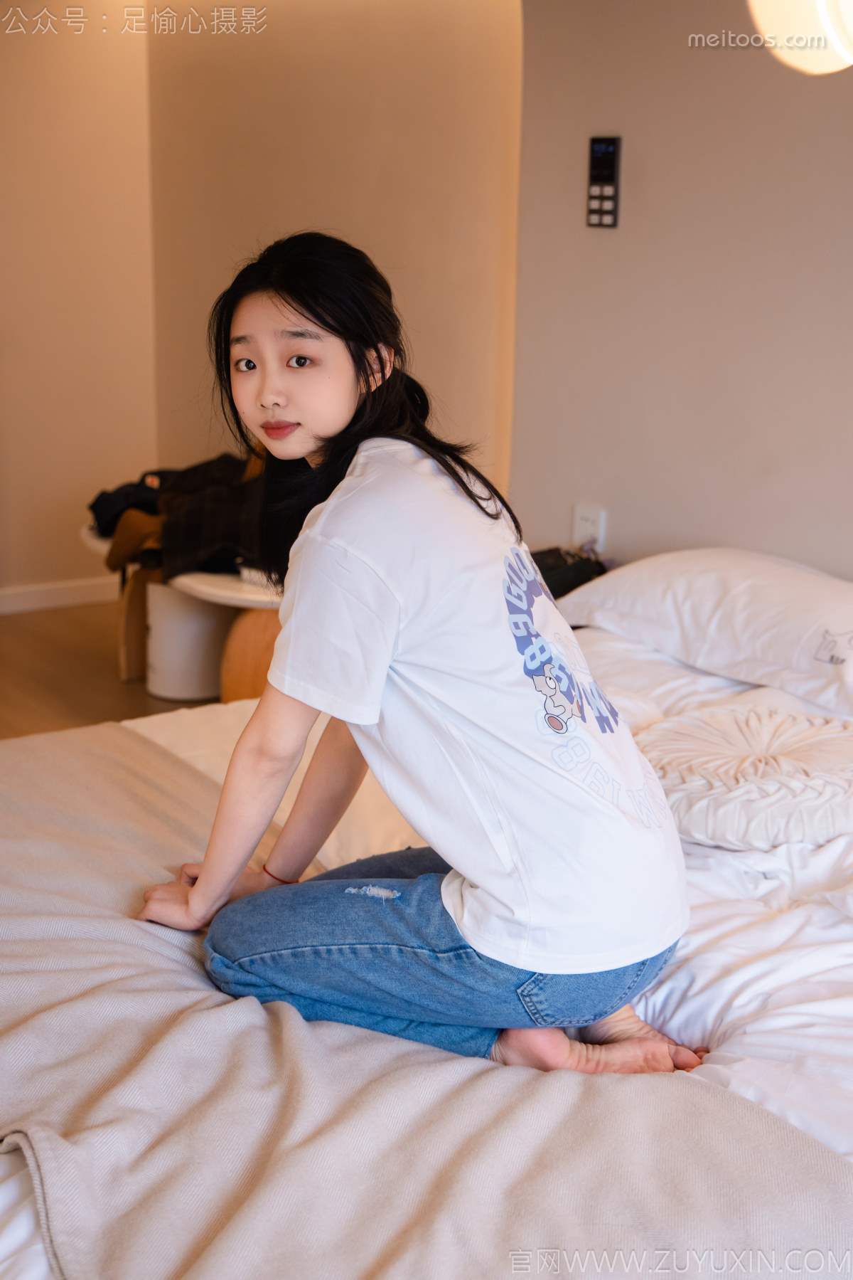 优萌馆 | 魅人堂 » 足愉心 NO.035 奶芙(搭配:白T恤、牛仔裤、运动鞋、白色棉袜、裸足)