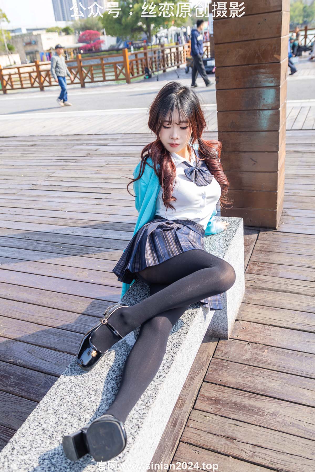 丝恋摄影 NO.020 小梦-学院风 jk连衣裙 黑色丝袜 黑色小皮鞋