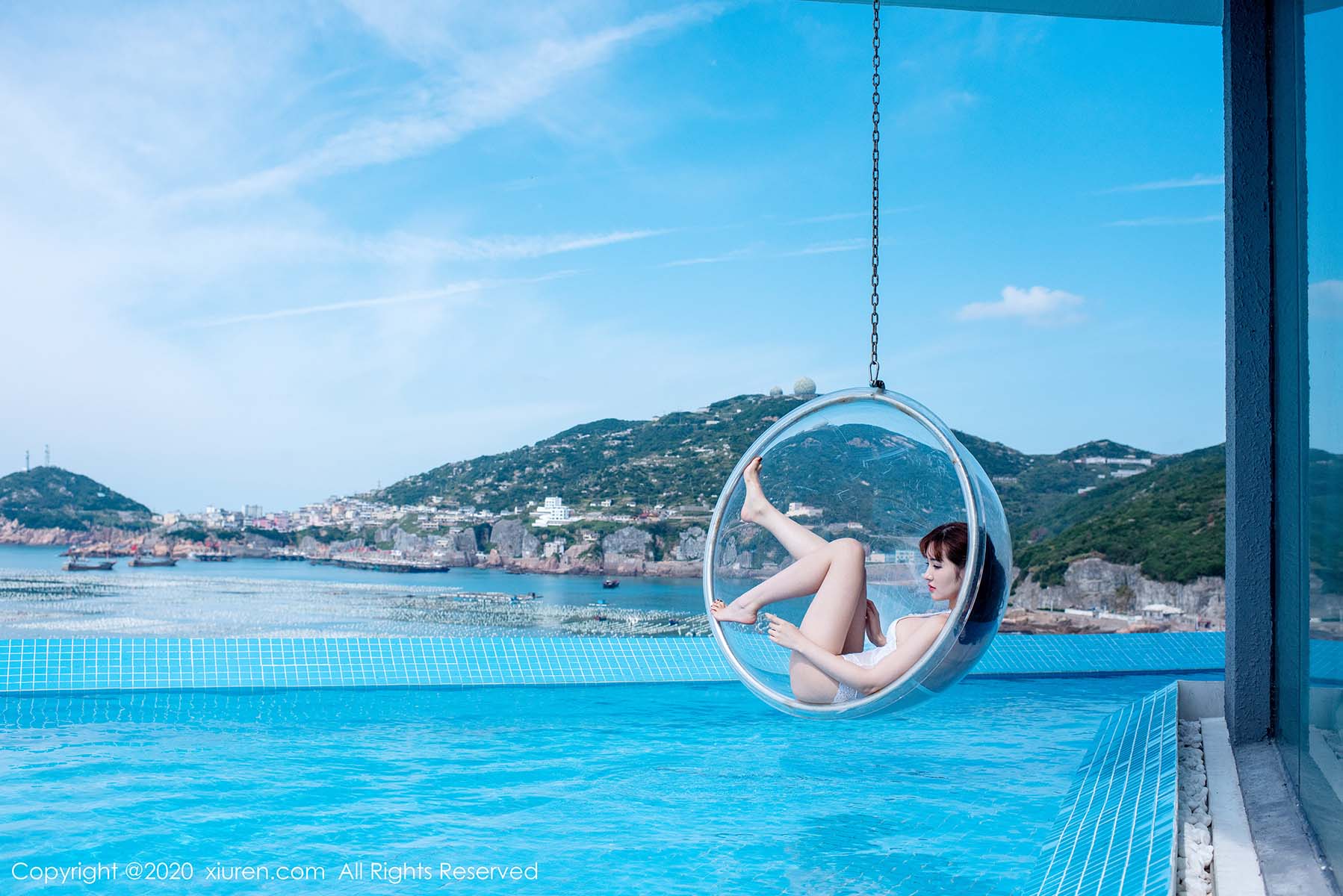 美人身穿蕾丝内衣,静静地躺在地板上,落地窗外是枸杞岛海天一色的美景。海面上星星点点的蓝色渔船,夕阳下温暖的落日余晖,与沈梦瑶曼妙的曲线勾勒出一副绝美的风景。这个美丽的民宿有一个很诗意的名字叫等风来,美景等风来,梦梦等你来。欢迎大家下载!